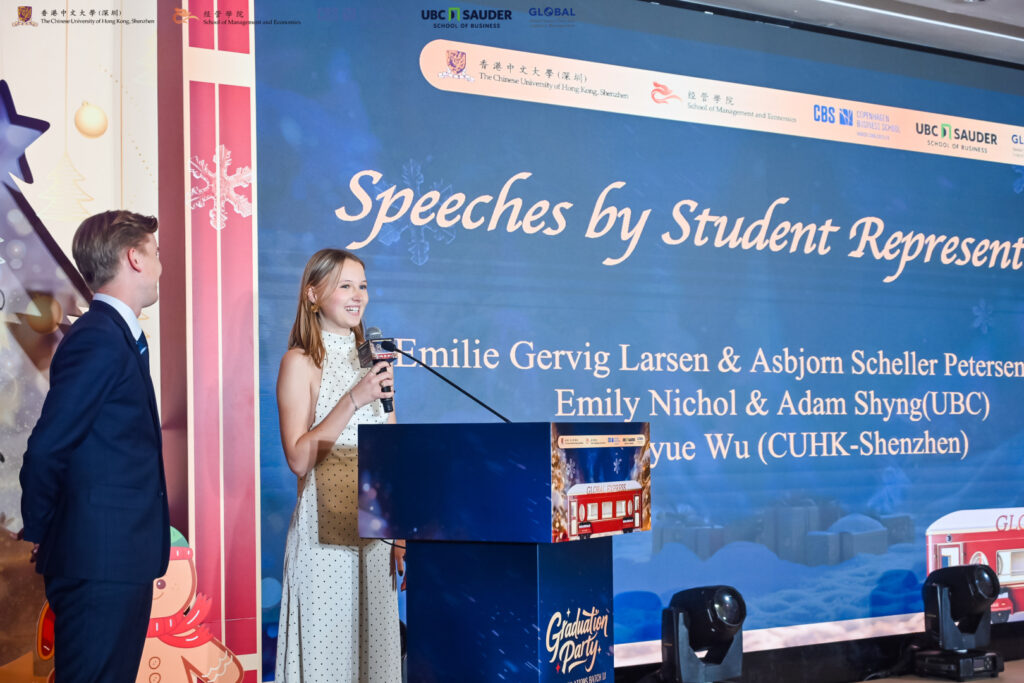Victor Toftdal, representing Copenhagen Business School, delivered a heartfelt speech during the GLOBAL SCLM Batch 8 graduation dinner. He reflected on the program’s impact, emphasizing the personal growth, global perspectives, and meaningful friendships built over three semesters across Copenhagen, Vancouver, and Shenzhen.